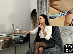 Curvy British BBW in high heels and glasses watches guy jerk off in CFNM couple